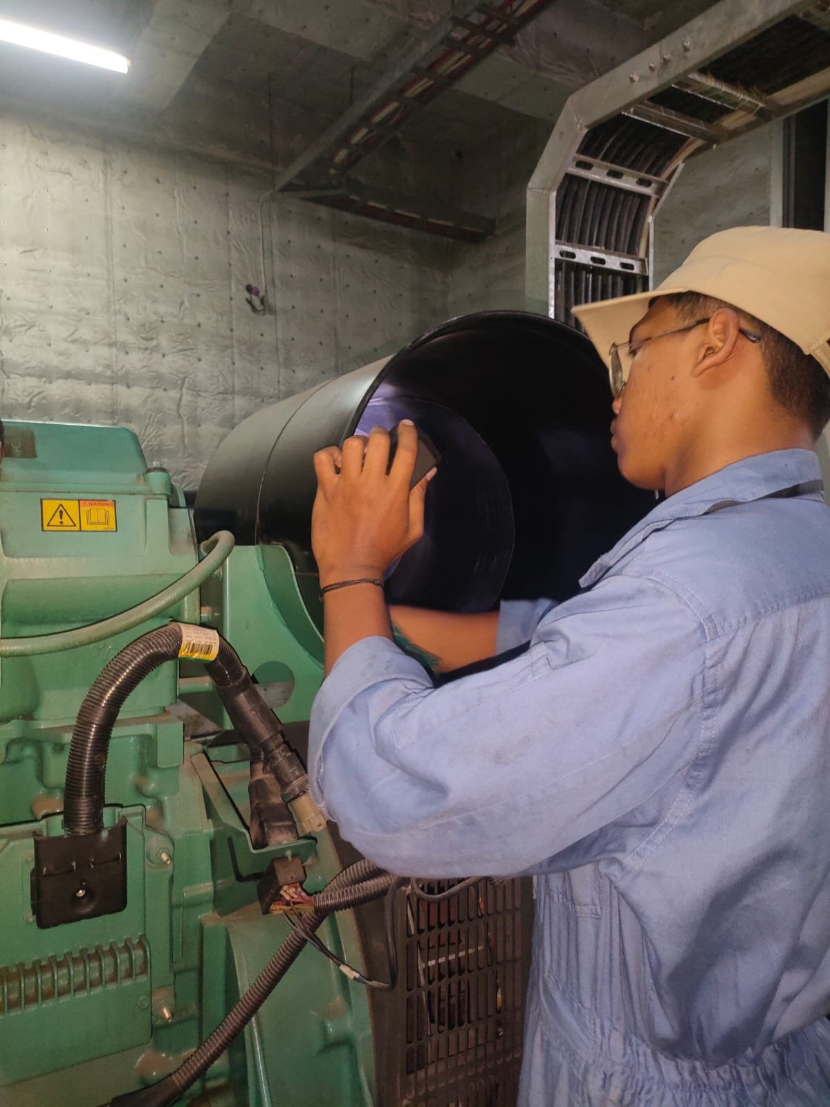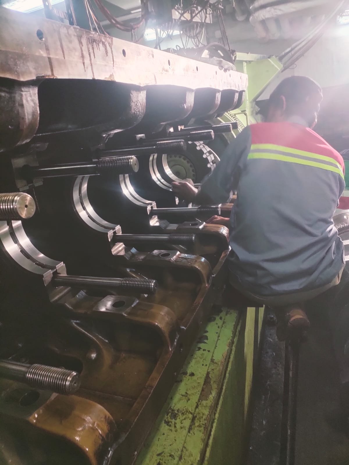 Fluida & filter, sistem pendingin, proteksi/kelistrikan, pengencangan baut pondasi, uji beban, serta evaluasi kebocoran dan getaran. Hasilnya dirangkum dalam laporan kondisi.